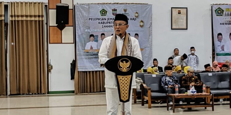 Dalam sambutannya Bupati menyampaikan ucapan selamat kepada para jemaah calon haji yang telah terpilih untuk dapat berangkat menunaikan ibadah haji tahun 1444 Hijriah/ 2023 Masehi ini.