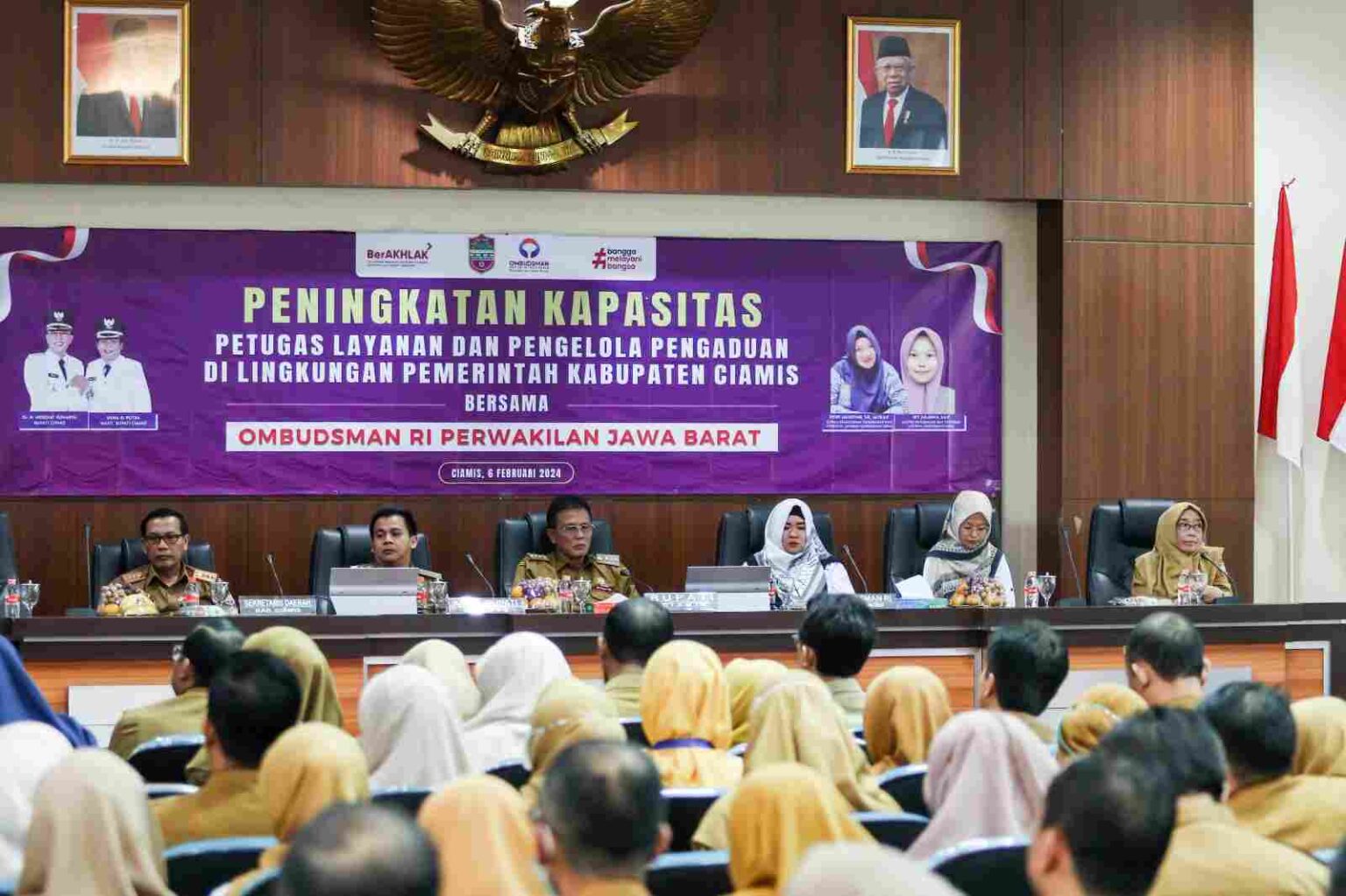 Berita Ciamis (Djavatoday.com),- Pemkab Ciamis terus berupaya untuk tingkatkan kualitas penyelenggaraan pelayanan publik. Salah satunya Pemkab Ciamis bersama Ombudsman Jabar menggelar Peningkatan Kapasitas bagi petugas layanan dan pengelola pengaduan di lingkup Pemkab Ciamis.